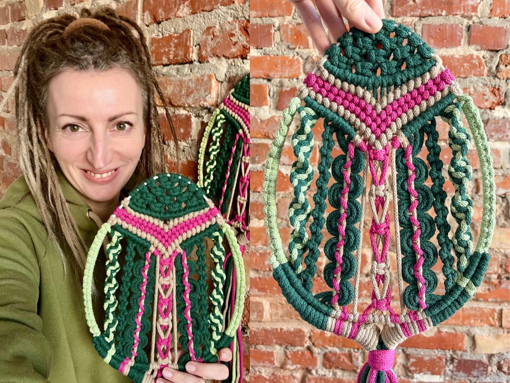 Do zaplecenia pisanki ze sznurków przymierzałam się przez kilka sezonów. Miałam nawet obręcz w kształcie jaja, ale jakoś nie mogłam znaleźć pomysłu godnego tego stelaża. A gdy w końcu się pojawił, zadziała się magia! Pisanki zaczęłyśmy zaplatać na zajęciach cyklicznych, były też warsztaty jednorazowe w pracowni. Teraz możesz makramową pisankę możesz zrobić bez wychodzenia z domu, bo jest już wyzwanie ZROBIĘ PISANKĘ!